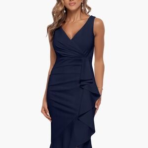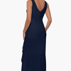 Betsy & Adam V-Neck Cascade Ruffle High-Low Gown (Women) 16