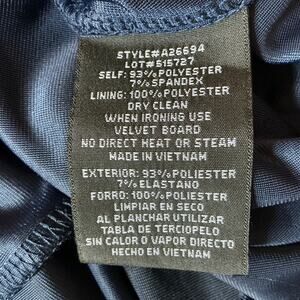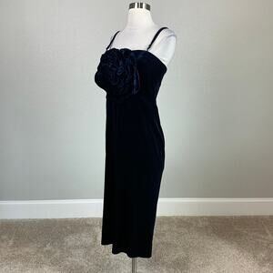 Betsy & Adam Velvet Flower Bodice Midi Sheath Cocktail Dress Navy Blue Size 14