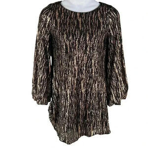 • Metallic Sequined Long Sleeve Mini Dress