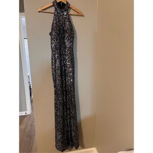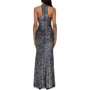 Betsy Adam Women's 4 Sequin Halter Evening Gown Black Metallic Glitz Glam Party