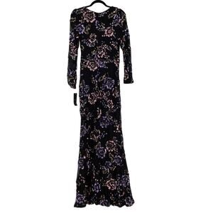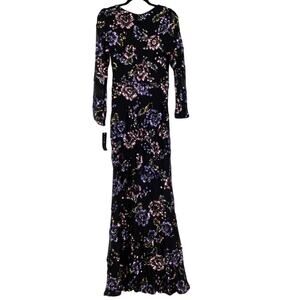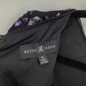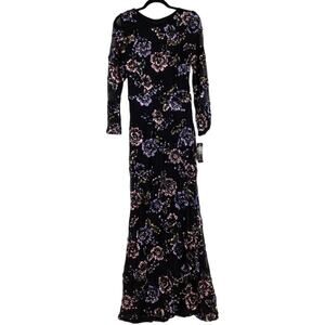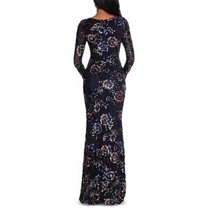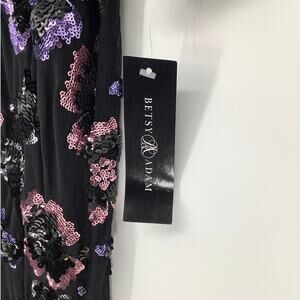 Betsy & Adam Womens 6 Black Floral Sequin Sheath Gown Dress Long Sleeve OS15-11