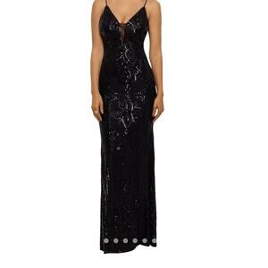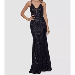 Betsy & Adam Women's Black Embellished Illusion-Inset Gown Black Size 10 NWOT