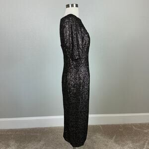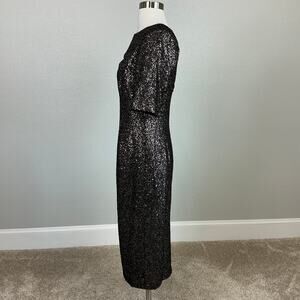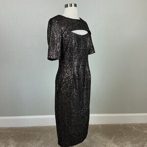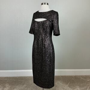 Betsy & Adam Women's Cocktail Dress Size 14 Black Sequin Cut Out Midi Sheath