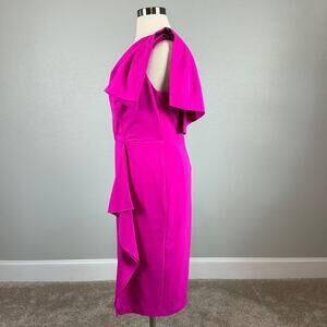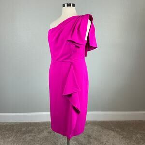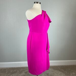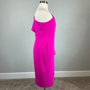 Betsy & Adam Women's Cocktail Dress Size 14W Pink One Shoulder Midi Sheath