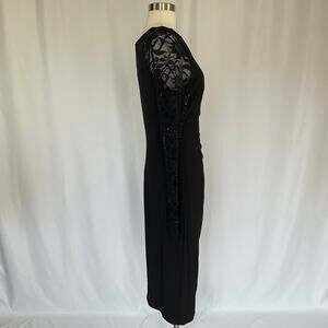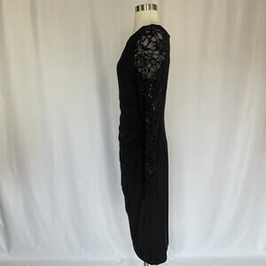 Betsy & Adam Women's Cocktail Dress Size 6 Black Sequin Lace Long Sleeve Sheath