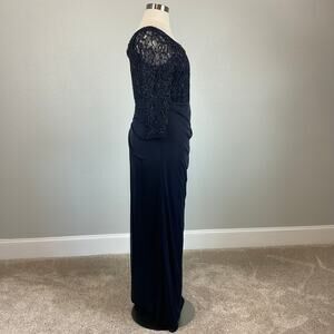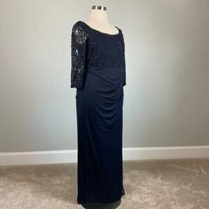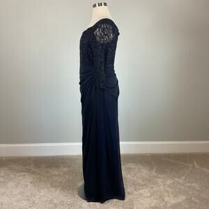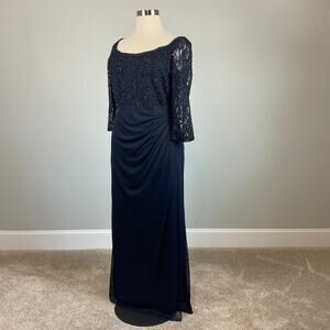 Betsy & Adam Women's Formal Dress Size 16W Blue Metallic Lace Evening Gown