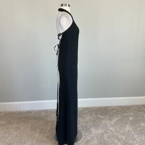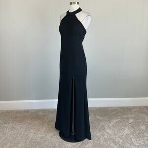Betsy & Adam Women's Formal Dress Size 4 Black Crepe Tie Up Backless Halter Gown