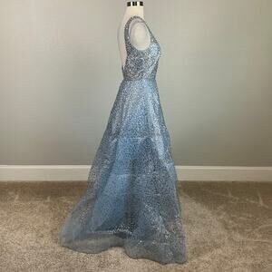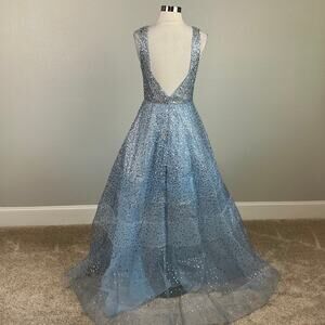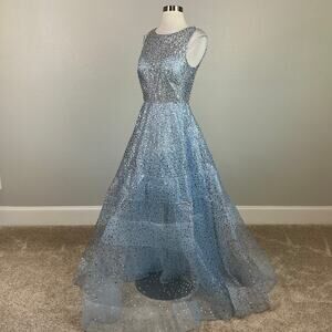 Betsy & Adam Women's Formal Dress Size 4 Blue Sheer Sequined Backless Ball Gown
