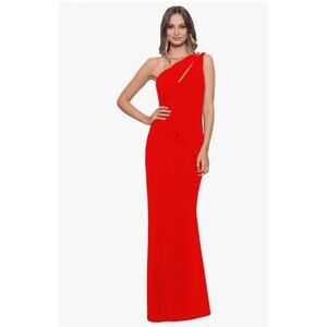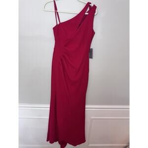 Betsy & Adam Womens Long Sleeveless One Shoulder Side Ruched Gown Size 4 Red NWT