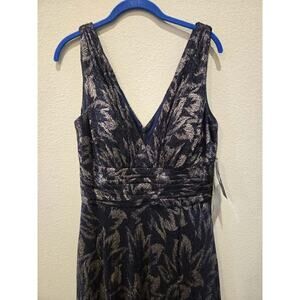 Betsy & Adam Women's One-Shoulder Metallic Floral Gown Blue Size 12