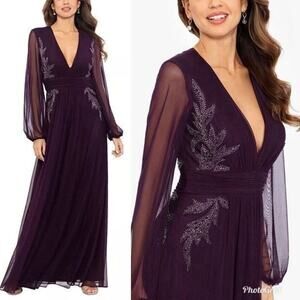Betsy & Adam Women's V-Neck Embroidered Chiffon Gown Size 8 NWT