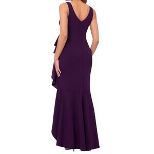 Betsy & Adam dress Candace long v neck high low cascade purple size 10