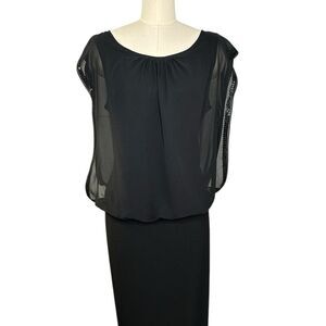 Betsy & Adam Black Chiffon Sequined Column Maxi Formal Dress | 12