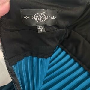 The Betsy & Adam™ Long Ity Ombre Charmous Skirt will make your look dazzling. This floor-length dress features V-neckline, zippered back closure, and pleated metallic skirt.