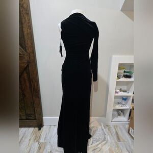 Betsy & Adam Velvet Asymmetrical-Neck One-Sleeve Gown NWT sz 2 Black
