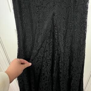 Betsy & Adam's Mermaid Gown Godet Hem Textured Floral Lace Open Back Formal 2
