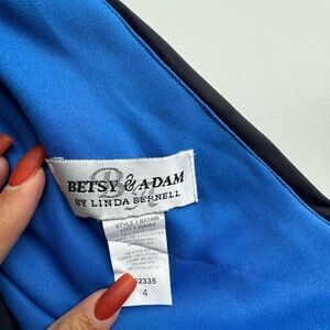 This stunning Betsy & Adam dress in blue Ombre is the perfect addition to any wardrobe. The dress features a one-shoulder neckline and is made 100% polyester for a comfortable, yet formidable fit. The long ball gown style is perfect for any occasion, from a party to a cocktail event.