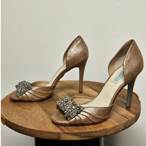 Betsy Johnson Bronze Jeweled Prom Rhinestone Open Toe Wedding Heels Size 10