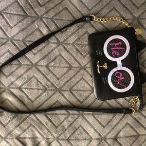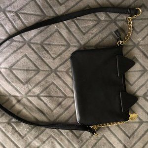 Betsy Johnson Cat's MEOW Purse Black with Strap