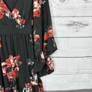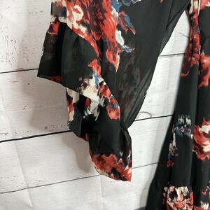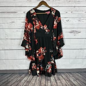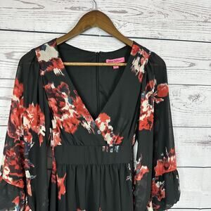 Betsy Johnson Dress Womens 8 Black Floral Ruffle Layered Baby Doll Bambi
