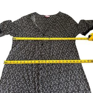 The Betsy Johnson Dress is a stunning women's midi dress in black and gray, featuring a floral lace design with a whimsical touch. It has a V-neckline, 3/4 sleeves with a sleeveless style, and a button closure. Perfect for parties or cocktail events, this fit and flare dress with a slip style is lined for added comfort. Hand wash only, this dress is a timeless and elegant choice for the summer, fall, and spring seasons. Made in China, this dress from the Betsey Johnson brand is sure to make a statement.