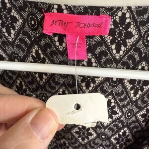 Betsy Johnson Dress Womens L Black Grey Midi Classic Floral Lace Whimsigoth