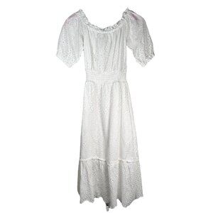 Betsy Johnson Eyelet Dress Small White Western Cottage Granny Wedding Concert Beach Coastal Summer Brunch