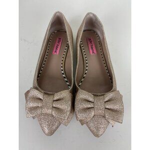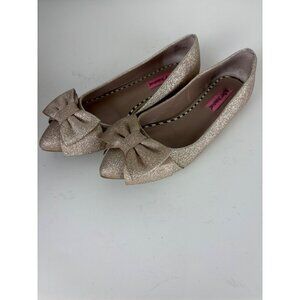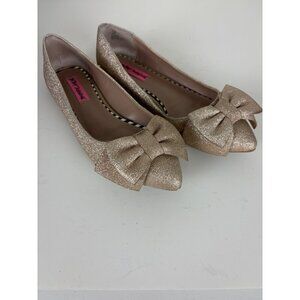 Betsy Johnson Gold Glitter Bow Pointed Toe Flats Size 7.5
