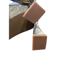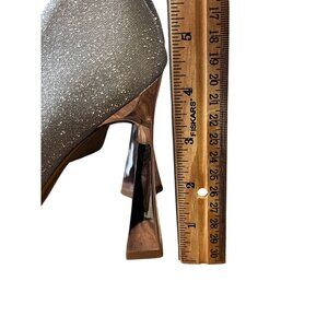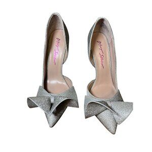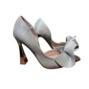 Betsy Johnson Heel 7.5M Silver Bow Metallic Glitter Glam Wedding Shiny Vegas
