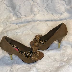 Betsy Johnson Knotted Brown Leather & Suede Pumps