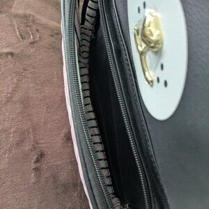 *Inside fabric is black striped with white and pink star pattern with her stamped logo on it.