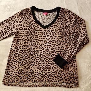Betsy Johnson Large V Neck Long Sleeve Animal Print Cheetah Pullover Top, very soft