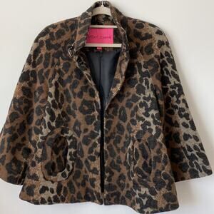 Betsy Johnson Leopard Printed Wool Blend Coat Size: Petite Small