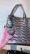 This is my purse. It’s a little small for me. So instead of it just hanging around my house I thought I would find it a new owner. Like all things Betsy it’s a beautiful shoulder bag with steel gray chain straps. Removable heart shaped purse, charm attached. Quilted metallic fabric on the outside. Inside it is hot pink. There is one small flaw where a black pen leaked. Please see photo. Overall it’s insignificant and how great this bag still looks only used it a few times. Snap closure inside a zippered middle pocket, a zipper side pocket and another pocket on the opposite side. Nice and roomy inside.