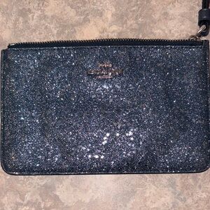 Elegant Coach wristlet with a shimmering blue finish. Ideal for evening outings. NWOT. Bought new for about $100
