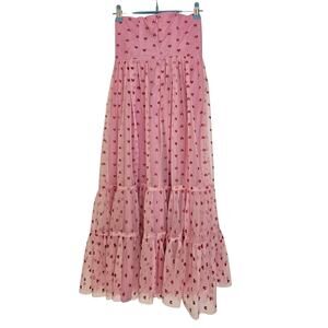Betsy Johnson Pale Pink Glittery Heart Printed Tulle Romantic Strapless Midi Dress