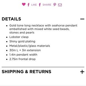 Brand NWT. This is a gorgeous Betsy Johnson Seahorse Necklace—perfect for the beach! Look at those details! This is the actual necklace you will be receiving! No dust bag, but box upon request.