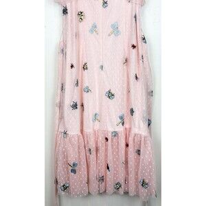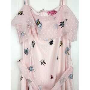 Betsy Johnson Pink Ruffle Tiered Cottagecore Bees Bugs Polka Dot Dress, Size 12