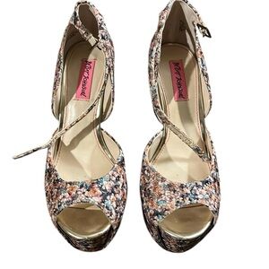 Betsy Johnson Platform Heels Floral Fabric Woman’s Size 7.5 Bandit-6 Inch