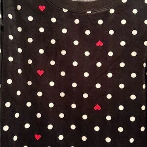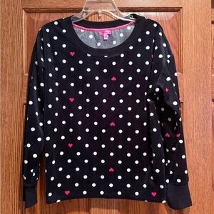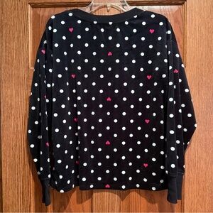 Betsy Johnson Polka Dot & Heart Velour Top/Sweater Women's Large Long Sleeves