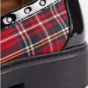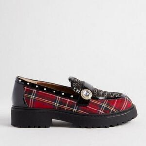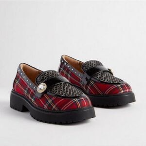 Betsy Johnson Red Tartan Plaid Chunky Jeweled Loafers NWT Academia