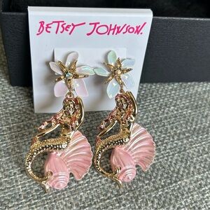 Betsy Johnson SHELL YEAH LARGE MERMAID DROP EARRINGS WHITE AND PINK