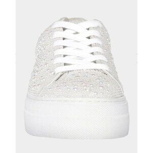Elevate your sneaker game with these Betsey Johnson SIDNY platform sneakers. The ivory color and all-over pearl design add a touch of sophistication to your athletic style. These shoes are perfect for any fashion-forward woman who wants to make a statement with their footwear.