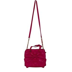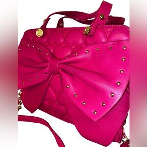 Betsy Johnson Satchel Style Purse with Large Bow Detail & Shoulder Straps PINK