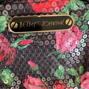 BETSEY JOHNSON Sequin Garden Rose Cosmetic Bag in excellent pre-owned condition.