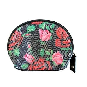 Betsy Johnson Sequin Rose Garden Bag Cosmetic Bag Small Zipper Pouch