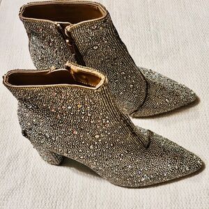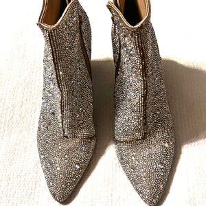 Betsy Johnson Silver Sequins Ankle Boots Pointed Toe Size 6.5 Zip Closure