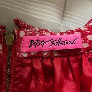 Red with small white flowers and ruffle waistband mini skirt. Beyond cute!