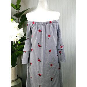 Betsy Johnson Women's Size 16 Off the Shoulder Blue Stripe Ruffle Dress Flowers