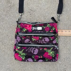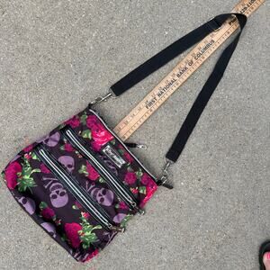 Betsy Johnson Deadstock Y2K Skull and Roses Crossbody Purse with lots of zipper pockets